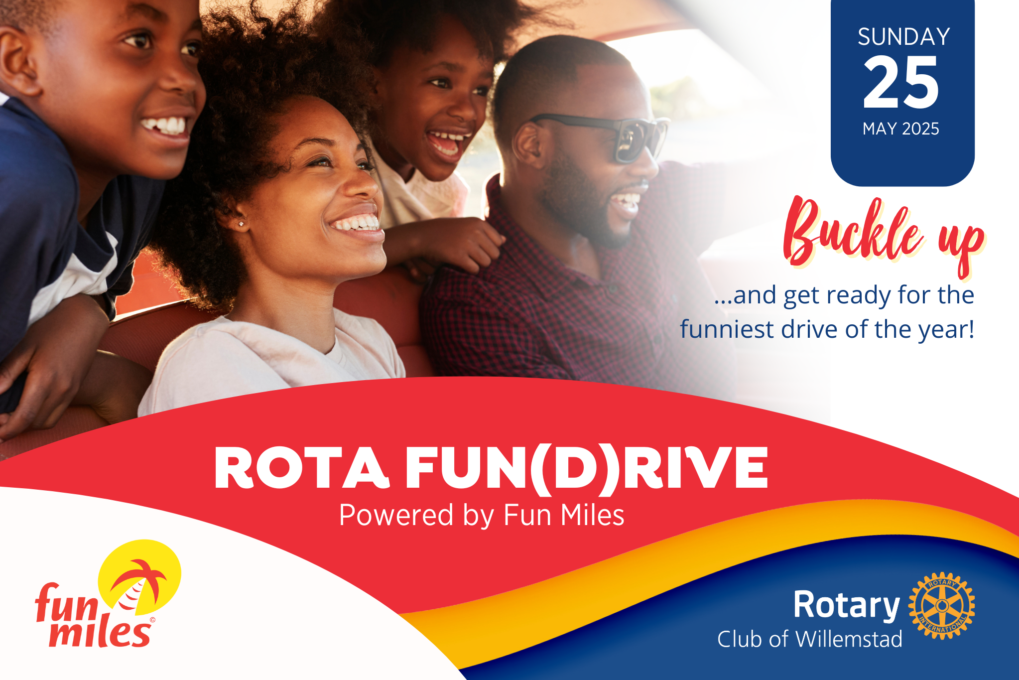 Get ready and fasten your seatbelts for the most FUN ride of the year! Join the Rotary Club Willemstad for an unforgettable Fun(D)rive powered by Fun Miles on May 25th, 2025. Participate to support a good cause and for a chance to win FUNtastic prizes!